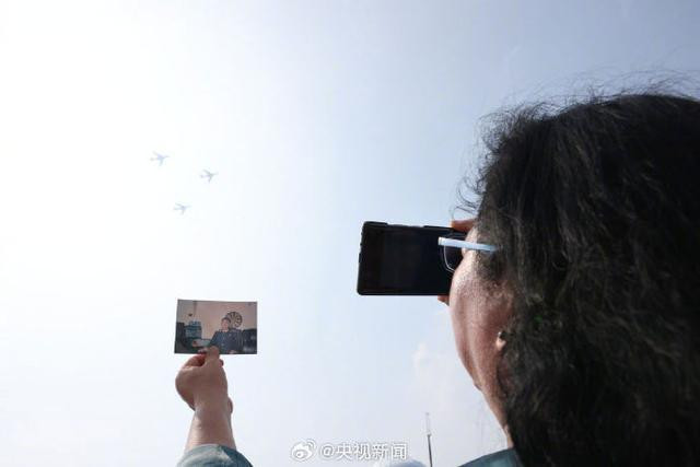 九三盛大阅兵,当空中梯队飞过天安门广场时,“海空卫士”王伟的妻子,在观礼台上把王伟的照片举向蓝天。她大声说:“王伟,你和战友们又见面了!”王伟生前最大的愿望就是能驾驶战斗机从航母上起航,如今,他的夙愿已由战友们实现。